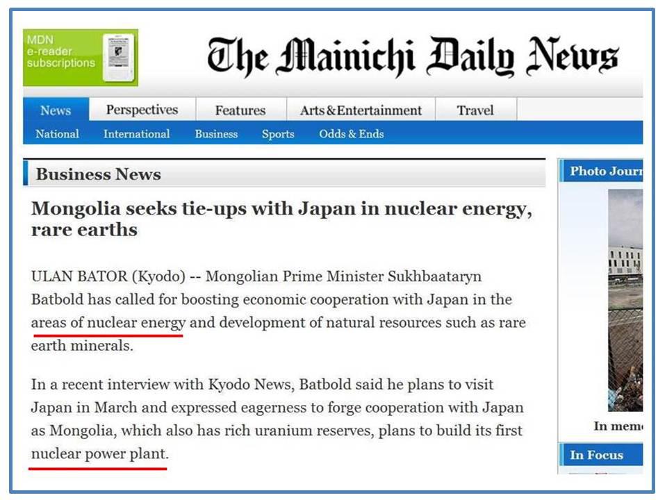 Японы маиничи сонинд гарсан Монголд цөмийн хог хаягдал хаях тухай нийтлэл